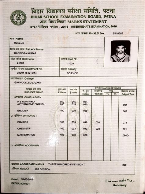 bihar school examination board patna marks statement